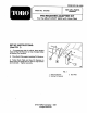 FORM NO. 95-2426 PART NO. 95-2425 For the MULTI-PRO® 5500 with Hose Reel L PIN RECEIVER ADAPTER KIT J SET-UP INSTRUCTIONS: (See FIG. 1) 1. On passenger side of vehicle, place angled edge of New Pin Receiver on top of angled edge of existing Pin Receiver. 2. Place Back Plate against existing Pin Receiver, 3. Fasten Back Plate and New Pin Receiver in place using (3) three 3/8° x 3" hex hd. cap screws and lockouts. Tighten securely. FiG. 1 1. New Pin Receiver 3. Back Plate 2.