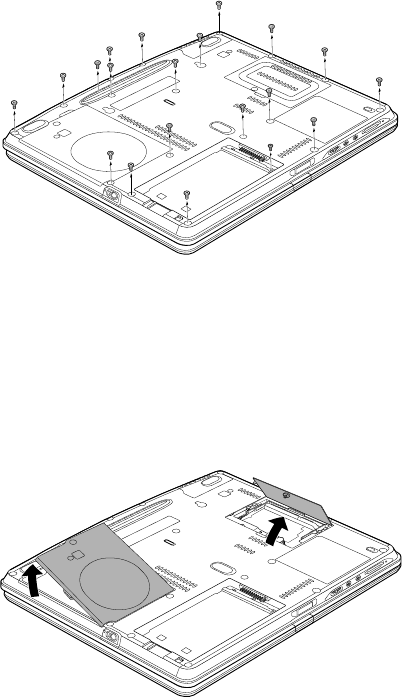 5. Remove twenty screws securing computer’s under cover. (One screw is situated