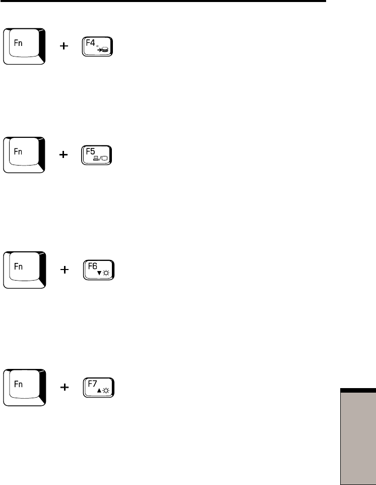 LCD Display Brightness: Pressing Fn + F6 decreases the LCD display bright-