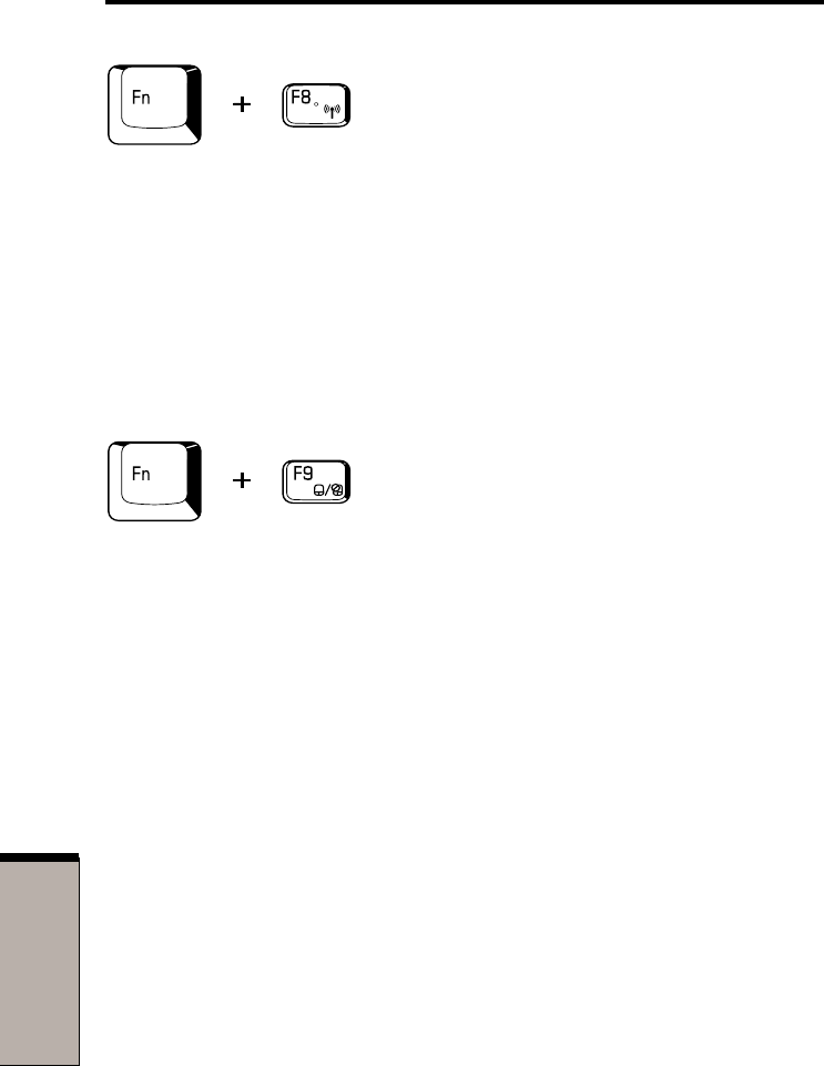 Touch Pad: Pressing Fn + F9 enables or disables the Touch Pad function. When