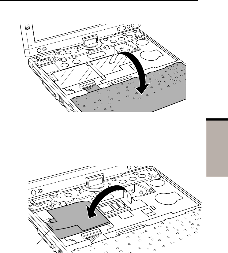 7. Raise the insulation sheet covering the memory module to appear the module.
