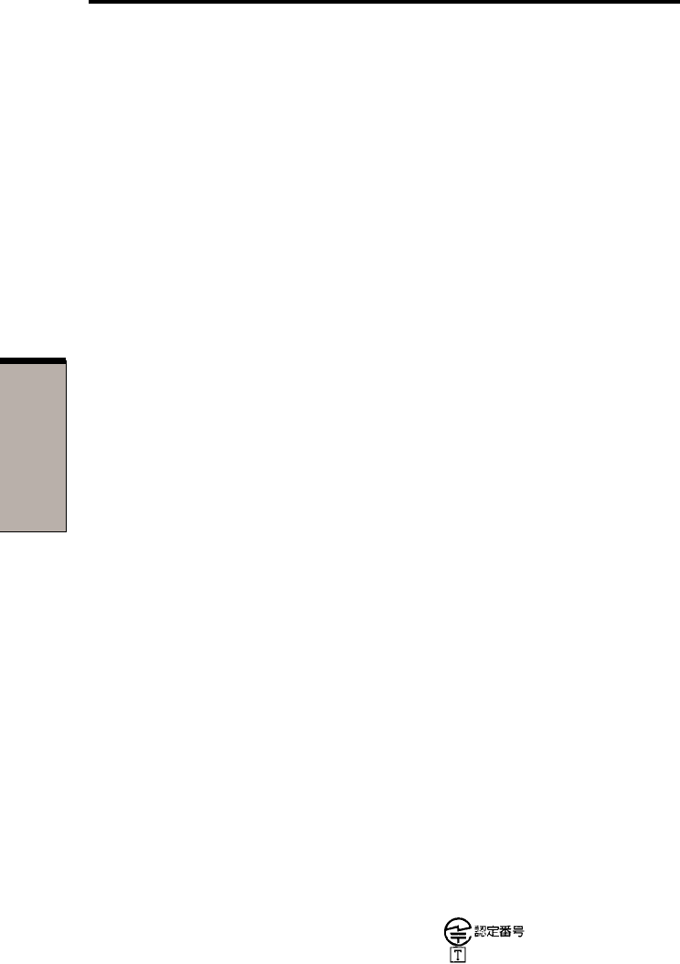 The internal modem is approved by Japan Approvals Institute for Telecommu-