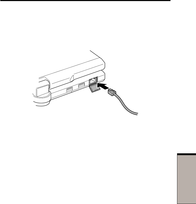 2. Plug one end of the cable into the LAN’s jack. Press gently until you hear the
