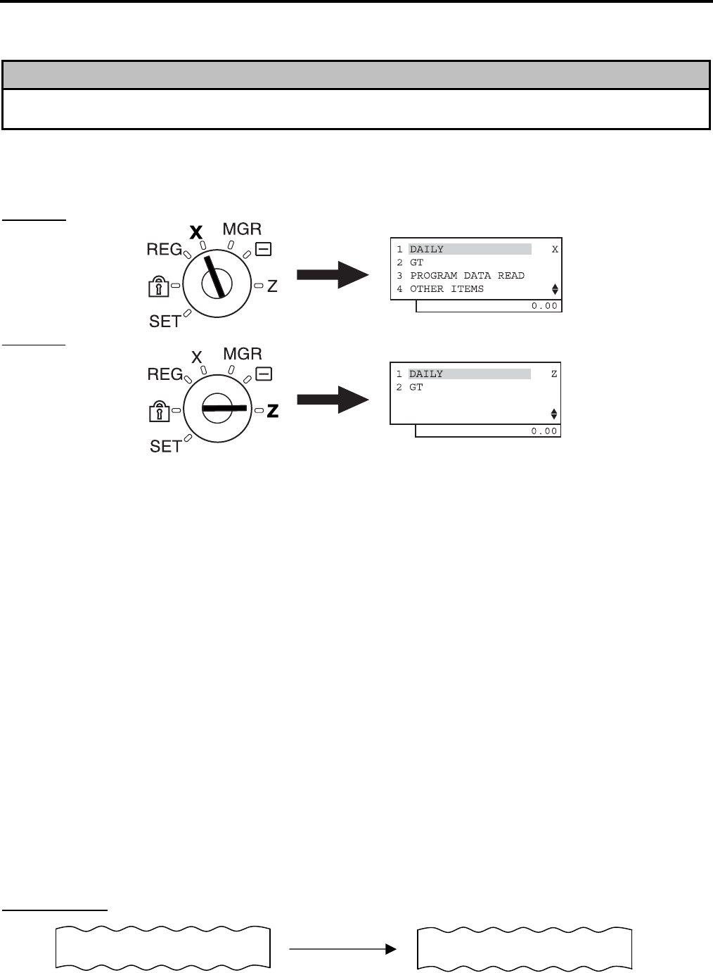 2. The symbol “X...” is printed on the top line of a Daily Read Report, “Z...” on a Daily Reset Report, “GTX...” on