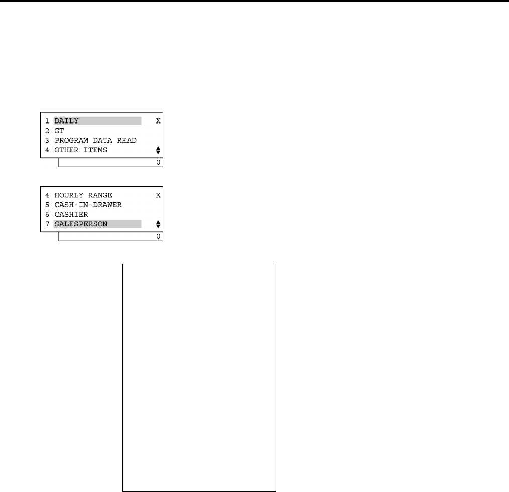 Select “SALESPERSON” with the [↓] or [↑] key, then depress the [7]