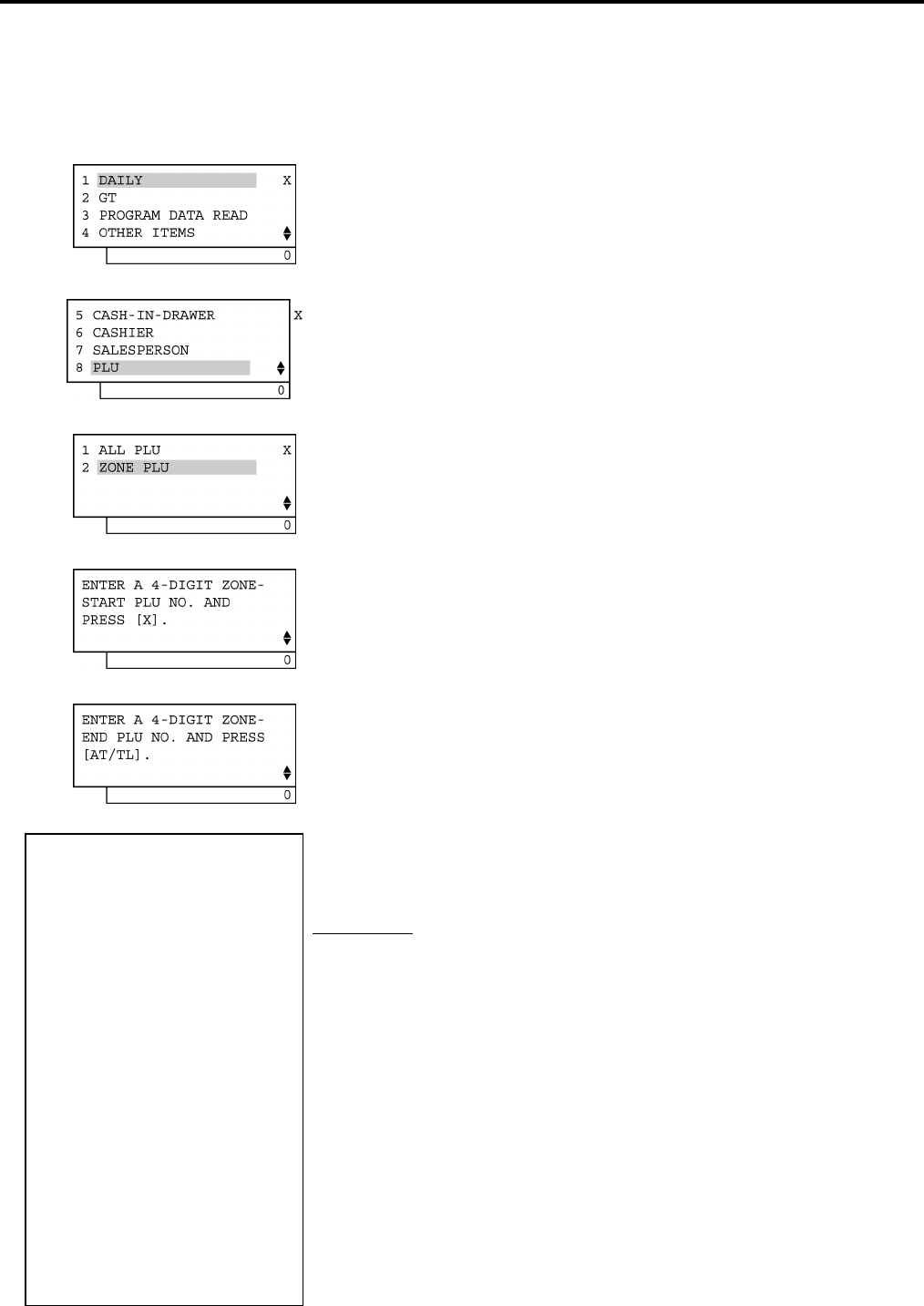 NOTE: In Zone PLU Read Reports: