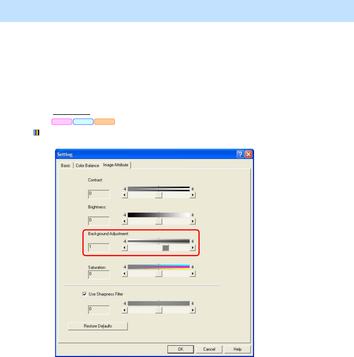 "Background adjustment" option in the "Image Attribute" tab within the range of "1" to "4".