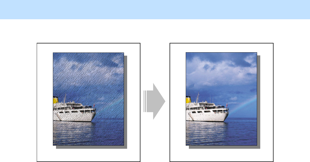 Moiré occurs on the photo image. Moiré is eliminated and a clear copy image is