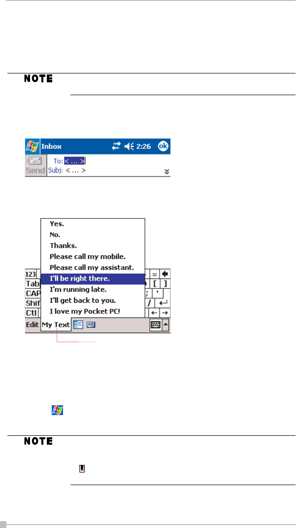 When using Inbox or MSN Messenger, use My Text to quickly insert pre-