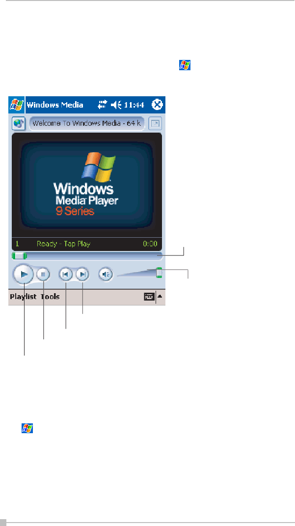 Windows Media Player for Pocket PC, tap , Programs, and then tap