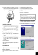 v If you want to connect the e-STUDIO60F to a PC, please refer to the chapter PC connection. You must install the software first and then connect the e-STUDIO60F to the PC! After you have connected the e-STUDIO60F to the mains, it will prompt you to make some basic settings as follows. 3 Take the ink cartridges out of their packaging and remove the protective strip. v Please make sure that the protective strip was removed completely.