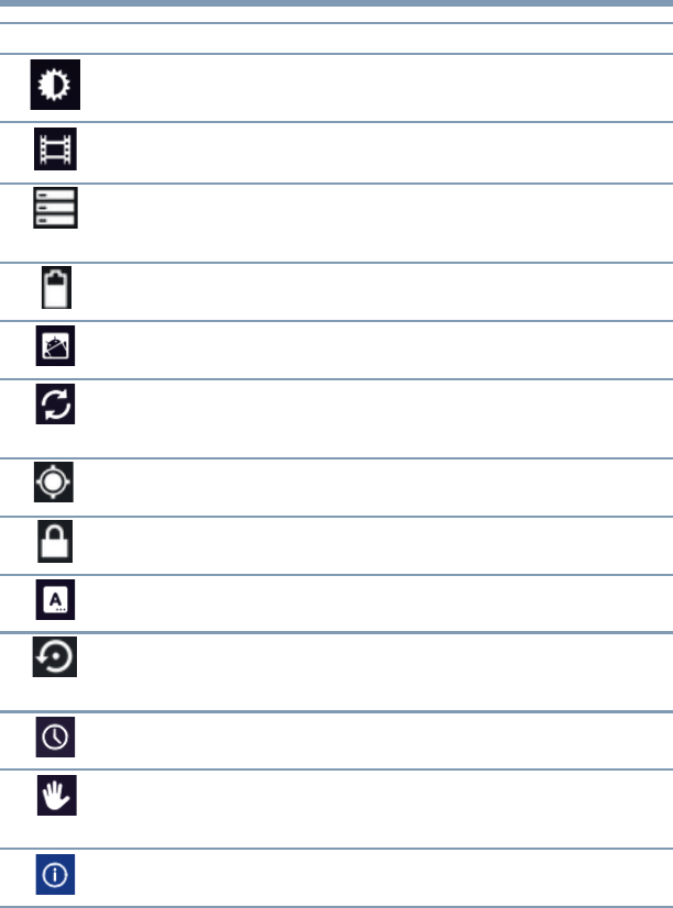 Battery Displays battery status, see “Battery Notice” on page 27.