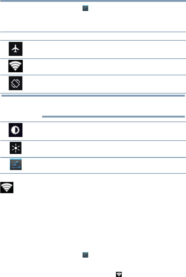 Airplane mode Touch to turn ON/OFF Airplane mode, see “Wireless and