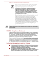 Consult the dealer or an experienced radio/TV technician for help. Only peripherals complying with the FCC class B limits may be attached to this equipment. Operation with non-compliant peripherals or peripherals not recommended by TOSHIBA is likely to result in interference to radio and TV reception. Shielded cables must be used between the external devices and the computer’s Universal Serial Bus (USB 2.0 and 3.0) ports, HDMI port and microphone jack.