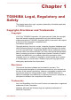 Table of Contents Chapter 1 TOSHIBA Legal, Regulatory and Safety Copyright, Disclaimer and Trademarks .............................................. 1-1 Regulatory Information ......................................................................... 1-2 Video Standard Notice .......................................................................... 1-7 OpenSSL Toolkit License Issues ......................................................... 1-7 ENERGY STAR® Program ..........................................