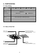9. DETACHMENTS 9-1. Indoor Unit MMU-AP0071MH, AP0091MH, AP0121MH, AP0151MH, AP0181MH Ceiling panel: RBC-UM11PG-E Preparing work: 1. Before work, be sure to stop the power supply of the air conditioner and turn off switch of the power supply breaker. (Otherwise an electric shock may be caused.) 2. Be sure to put on the gloves when working; otherwise an injury may be caused with parts sharp edges etc. No. Part name 1 Suction grille Procedure Remarks 1.