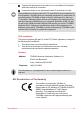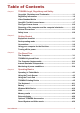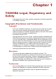 Table of Contents Chapter 1 TOSHIBA Legal, Regulatory and Safety Copyright, Disclaimer and Trademarks .............................................. 1-1 Regulatory Information ......................................................................... 1-2 Video Standard Notice .......................................................................... 1-7 OpenSSL Toolkit License Issues ......................................................... 1-7 FreeType License Issues .......................................