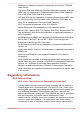 Chapter 1 TOSHIBA Legal, Regulatory and Safety This chapter states the Legal, regulatory and safety information applicable to TOSHIBA computers. Copyright, Disclaimer and Trademarks Copyright © 2012 by TOSHIBA Corporation. All rights reserved. Under the copyright laws, this manual cannot be reproduced in any form without the prior written permission of TOSHIBA. No patent liability is assumed, with respect to the use of the information contained herein.