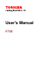 F750 Copyright © 2011 by TOSHIBA Corporation. All rights reserved. Under the copyright laws, this manual cannot be reproduced in any form without the prior written permission of TOSHIBA. No patent liability is assumed, with respect to the use of the information contained herein. First edition April 2011 Copyright authority for music, movies, computer programs, databases and other intellectual property covered by copyright laws belongs to the author or to the copyright owner.