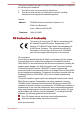 F750 Canadian regulatory information (Canada only) This digital apparatus does not exceed the Class B limits for radio noise emissions from digital apparatus as set out in the Radio Interference Regulation of the Canadian Department of Communications. Note that Canadian Department of Communications (DOC) regulations provide, that changes or modifications not expressly approved by TOSHIBA Corporation could void your authority to operate this equipment.