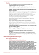 Sie Bluetooth- und Wireless LAN-Geräte gleichzeitig verwenden, kann die Netzwerkleistung möglicherweise beeinträchtigt werden; unter Umständen wird die Netzwerkverbindung sogar getrennt. Schalten Sie in diesem Fall umgehend eines der Geräte ab. Wenn Sie Fragen zur Verwendung der Wireless-LAN- oder BluetoothModule haben, besuchen Sie http://www.pc.support.global.toshiba.com . In Europa: http://www.toshiba-europe.com/computers/tnt/bluetooth.
