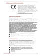 Erklärung zur EU-Konformität Dieses Produkt trägt das CE-Kennzeichen in Übereinstimmung mit den entsprechenden europäischen Richtlinien. Verantwortlich für die CE-Kennzeichnung ist die TOSHIBA EUROPE GMBH, Hammfelddamm 8, 41460 Neuss, Deutschland. Den vollständigen und offiziellen Text der EU-Konformitätserklärung finden Sie auf der TOSHIBA-Website http://epps.toshiba-teg.com im Internet.