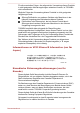 interner Bildschirm 6-7 Netzstrom 6-5 Speichermedien 6-9 Stromversorgung 6-5 Tastatur 6-7 Touchpad 6-10 Unterstützung von TOSHIBA 6-17 USB-Gerät 6-11 USB-Maus 6-11 L LAN anschließen 4-26 Kabeltypen 4-26 LCD Scharniere 3-10 Lüftungsschlitze 3-4, 3-6, 3-7, 3-11 R RecoveryFestplattenlaufwerk 5-26 M Reinigen des Computers 1-20 MultiMediaCard entfernen 4-30 SD/SDHC/SDXC-Karten formatieren 4-28 Hinweis 4-28 N Netzadapter anschließen 2-4 DC IN 19V-Buchse 3-3 zusätzlicher 4-35 Neustarten des Computers 2-10 S