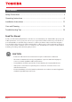 Safety Precautions Sa Operating Instructions O Installation Instructions In Care and Cleaning Ca Troubleshooting Tips Tr USER MANUAL TDDP2013ES2 TDDP3513ES2 TDDP5013ES2 TDDP5013ES2P Warning notices: Before using this product, please read this manual carefully and keep it for future reference. change without prior notice for product improvement. Consult with your dealer or the manufacturer for details. version B - 01 - 2019 us-toshibalifestyle.