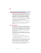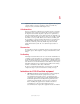Toshiba Utilities TOSHIBA Console 143 Sample TOSHIBA Controls Properties window 2 Click the Buttons tab 3 Check the boxes for the TOSHIBA Console button and/ or the Internet button. 4 Under Select a Program, make the desired selections. 5 Click Apply, then click OK. Power Management The Power Management feature enables you to control your computer’s power usage, regardless of the source, and use the many preset power modes, or create one yourself.