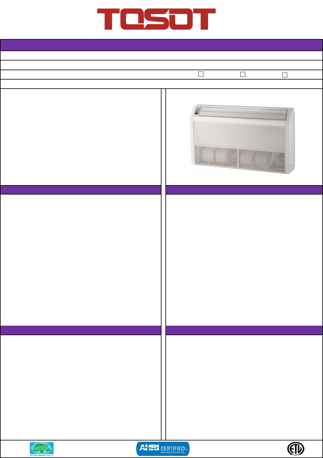 Rated Capacity 8,500 BTU/H Unit Dimensions (LxHxD) 48.0 x 27.5 x 8.9 -in