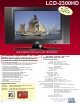 The Biggest Thing in Big LCD Monitors LCD-2007HD LCD-2007HDL LCD-2007HDT LCD-2007HDTL Active Matrix 20" Color LCD Monitor • HD compatible (supports 480p/i, 576p/i, 720p, 1080i) • • • • • • • • • • • • • • Component input capability provides superior viewing pleasure Resolution: 1366 (H) x 768 (V) dots Aspect ratio: 16:9 Brightness rating: 450 cd/m² (Nit) Anti-glare hard coating covers glass surface Contrast Ratio: 700:1 Zoom function Display: 20" TFT LCD active matrix Wireless remote control Back Light: