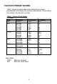 FACTORY-PRESET MODES Table 1 shows standard video mode setting that has been pre-adjusted at the factory for accurate video display. These setting are stored in the monitor's memory Table 1. Factory-Preset Modes PC mode Mode Resolution H-Freq.(KHz) NEC 640x400 24.83 VGA 640x350 31.47 720x400 31.47 640x480 31.47 640x480 37.86 640x480 37.5 SVGA 800x600 35.16 800x600 37.88 800x600 48.08 800x600 46.87 XGA 1024x768 48.36 1024x768 56.47 1024x768 60 SXGA 1280x1024 63.