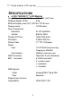 17” Quad display LCD monitor ______________________ SPECIFICATIONS l LCD-1700VRQ 17” LCD Monitor Overall Dimension (HxWxD): 483 x 354 x 50.3 mm Shipping Weight (G/W): 9 Kg Effective Display area (H/V): 337.92 x 270.34 mm Display colors: 16.7M colors Scan Frequencies: Horizontal 31.47K to 80KHz Vertical 60Hz to 75Hz Number of Pixels: 1280x1024 pixels Pixel pitch: 0.264x0.