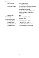 Specifications l LCD-1700VRZ 17” LCD 1U Rack Display Monitor Overall Dimension(HxWxD): Effective Display area(H/V): Display colors: Scan Frequencies: Horizontal Vertical Number of Pixels: Pixel pitch: Picture Tube: Power: Input Consumption PC RGB Connector: Audio connector Speaker RGB Signals: Video Sync Display Data Channel: Compatibility Video connector input S-connector AV connector Mini D type BNC connector Video connector output BNC connector 483 x 515 x 43 mm 337.92 x 270.34 mm 16M colors 31.