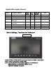 Display (Viewing Area) 7" (6.0" × 3.6") Resolution (Pixels) 800 H × RGB × 480 V Dot Pitch 0.1905mm × 0.1905mm Brightness (in cd/m²) 350 cd/m² System NTSC/PAL auto recognition Inputs 1 Composite, 1 Component HD/SD in/OUT, S-Video IN/OUT , DVI Dimensions 6.85"W × 5.24"H × 1.38"D Approx. Weight 0.7 Kgs(with Remote excluding packing) Power Consumption DC 12V 400 mA (run @ 5-20 VDC) 1.