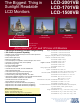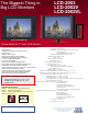 The Biggest Thing in Big LCD Monitors LCD-2007HD LCD-2007HDL LCD-2007HDT LCD-2007HDTL Active Matrix 20" Color LCD Monitor • HD compatible (supports 480p/i, 576p/i, 720p, 1080i) • • • • • • • • • • • • • • Component input capability provides superior viewing pleasure Resolution: 1366 (H) x 768 (V) dots Aspect ratio: 16:9 Brightness rating: 450 cd/m² (Nit) Anti-glare hard coating covers glass surface Contrast Ratio: 700:1 Zoom function Display: 20" TFT LCD active matrix Wireless remote control Back Light: