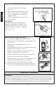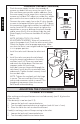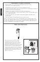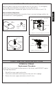 Replacement Procedure (continued) ENGLISH 4. Remove old fill valve and use damp sponge to clean hole in tank. 5. Place new fill valve inside tank hole. 6. Thread mounting nut onto fill valve shank and tighten the nut. N OTE: Do not over-tighten. Be sure to install fill valve in a position that does not interfere with the trip lever operation. 7. Connect water supply to fill valve shank and hand-tighten only. NO TE: Do not overtighten. These are plastic parts.