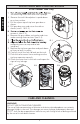 INSTALLATION PROCEDURE Connecting Water Line 1) T he supply stop should be installed per the supply stop instruction at the location shown in the Before Installation section. Ill. 6 ENGLISH Water Inlet 2) Flush the water line briefly to ensure removal of debris. Connect flexible supply hose to supply stop. Washer Coupling Nut CAUTION: Hand-tighten only. 3) O pen the supply stop, checking for leakage. Slightly re-tighten if necessary. The water supply pressure should be 20 to 80 psi static.