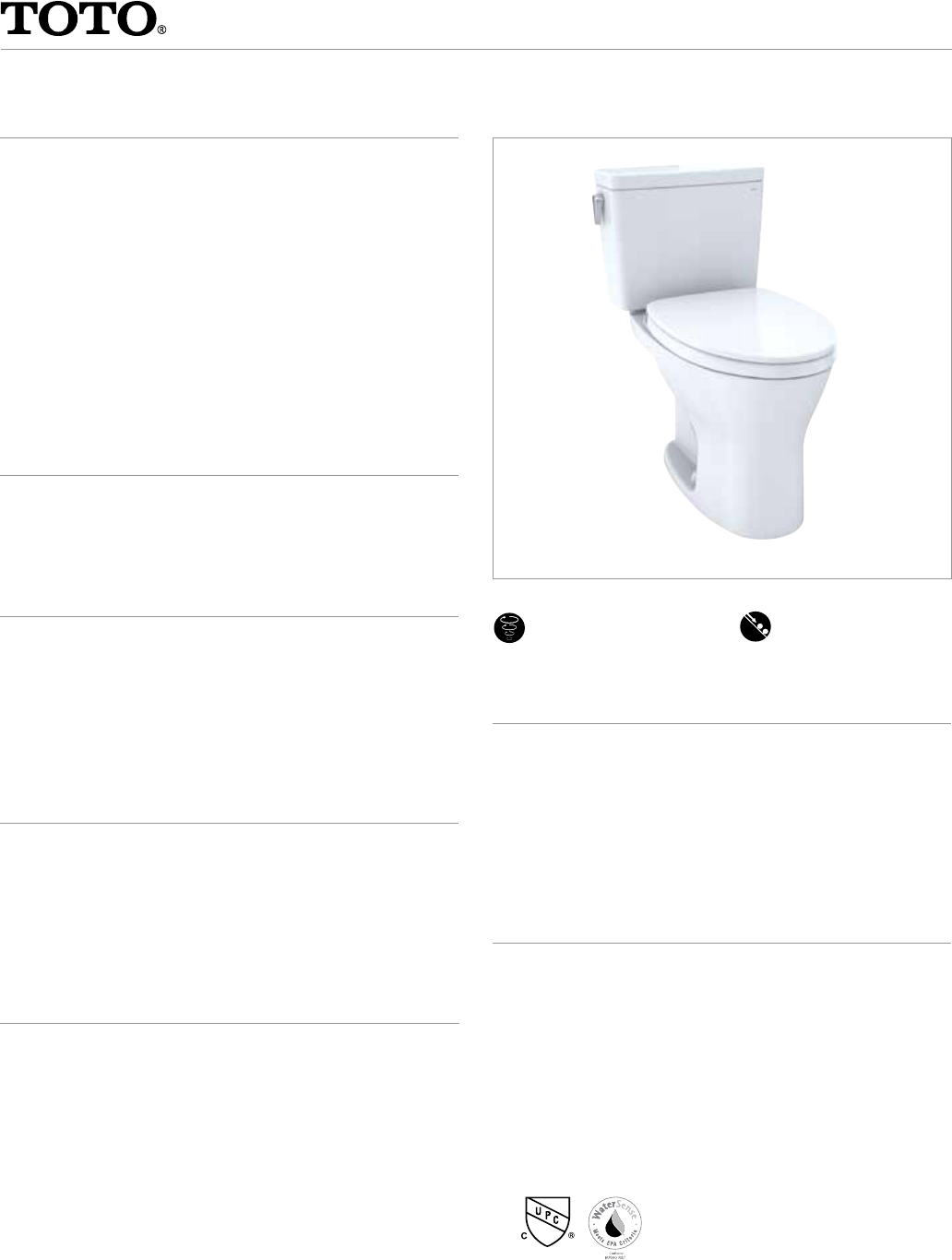 • High-efficiency dual flush 1.28 & 0.8 GPF