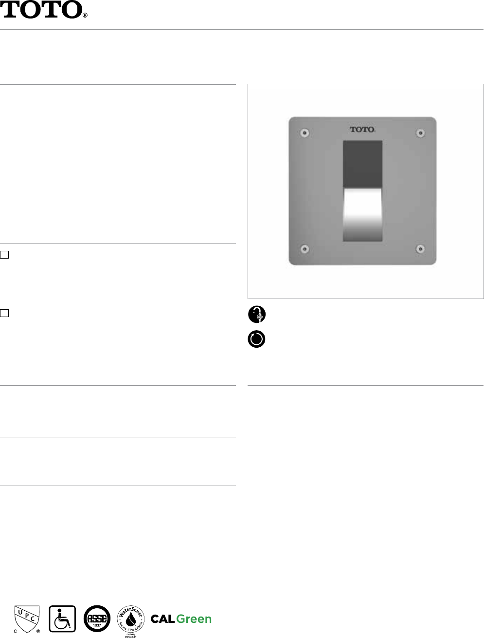 manual flush override. Product shall have 6-second