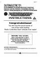 Ages 8 and up Caution: Not recommended for children under B years of age. Read instructions before operating. Avoid hitting people, pets or home furnishings. Never operate in the street. Keep hair, hands and clothing away from vehicle when power switch is turned ON. DO NOT pick up moving vehicle. Remove battery pack and transmitter battery when vehicle is to be stored for an . extended period. Do not store in direct sunlight. AVOID TIRE ATALANTA ON PAINTED OR VARNISHED SURFACES.