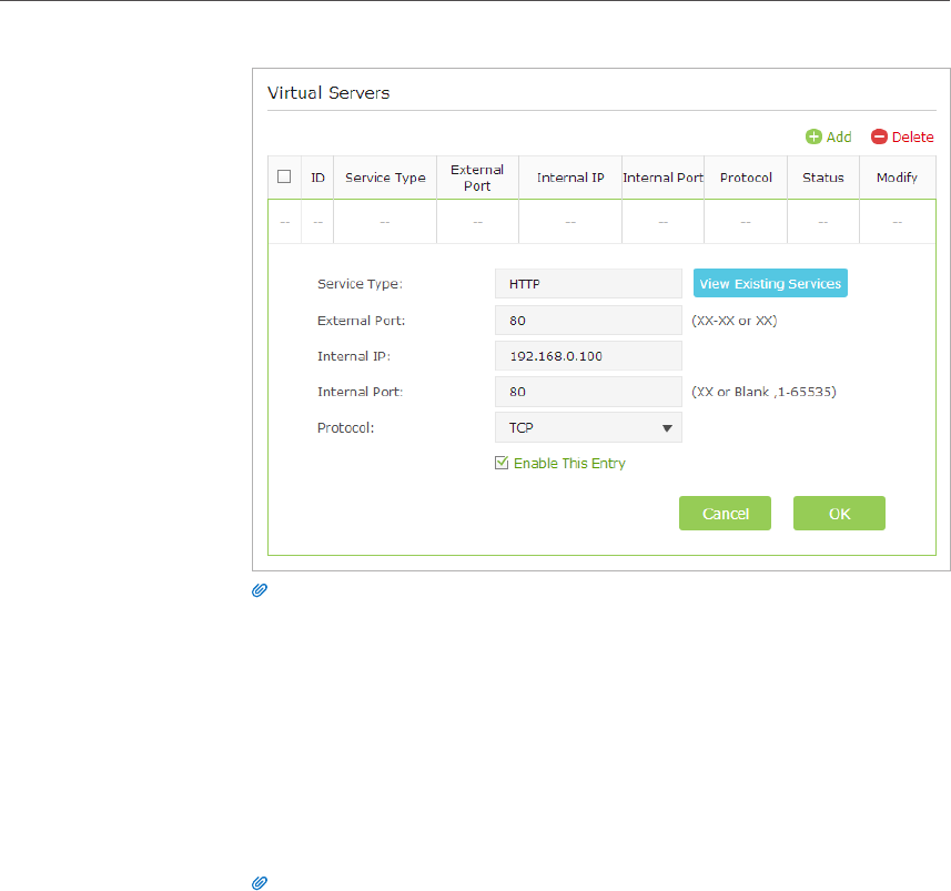 1. It is recommended to keep the default settings of Internal Port and Protocol if you