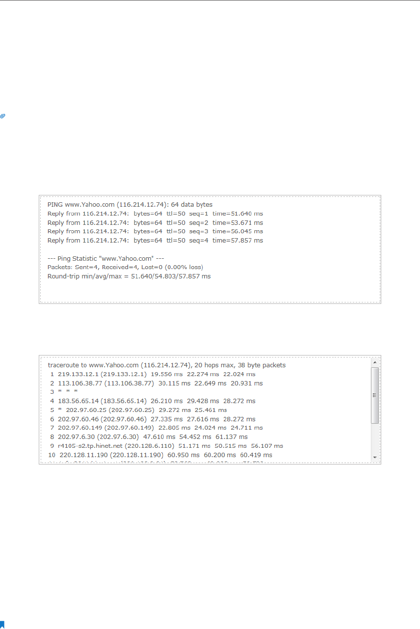 Click Advanced, you can modify the ping count, ping packet size or the Traceroute Max TTL. It’s recommended to