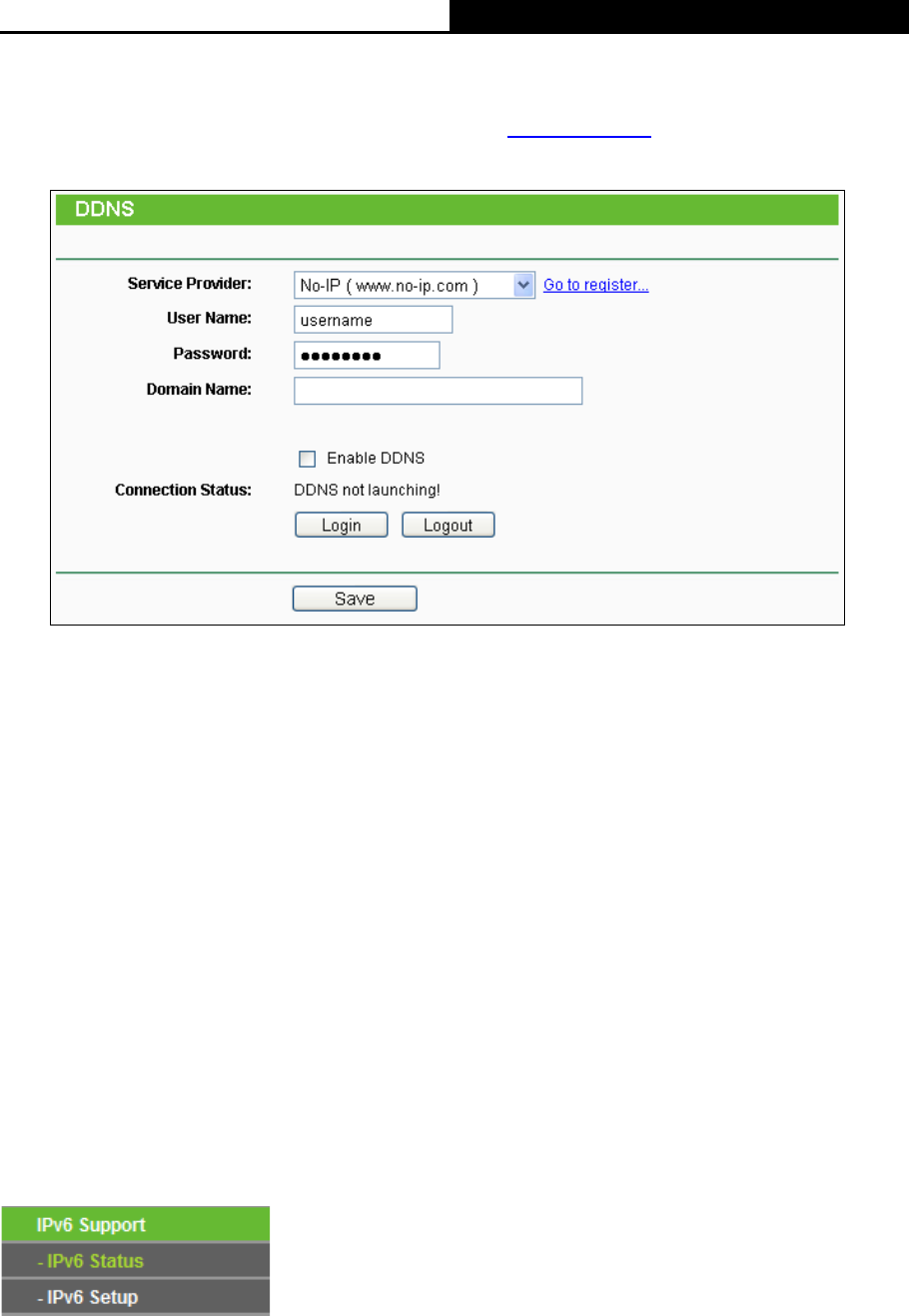 If the dynamic DNS Service Provider you select is www.no-ip.com, the page will appear as