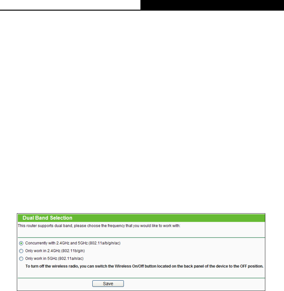 Choose menu “Dual Band Selection”, and you can choose the working frequency for your router.