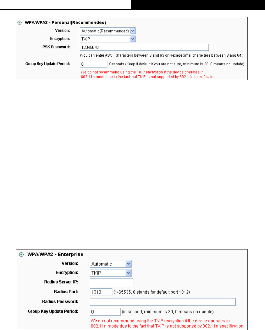 If you check the WPA/WPA2-Enterprise radio button and choose TKIP encryption, you will