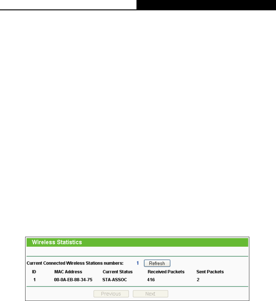 Wireless Statistics”, you can see the MAC Address, Current Status,