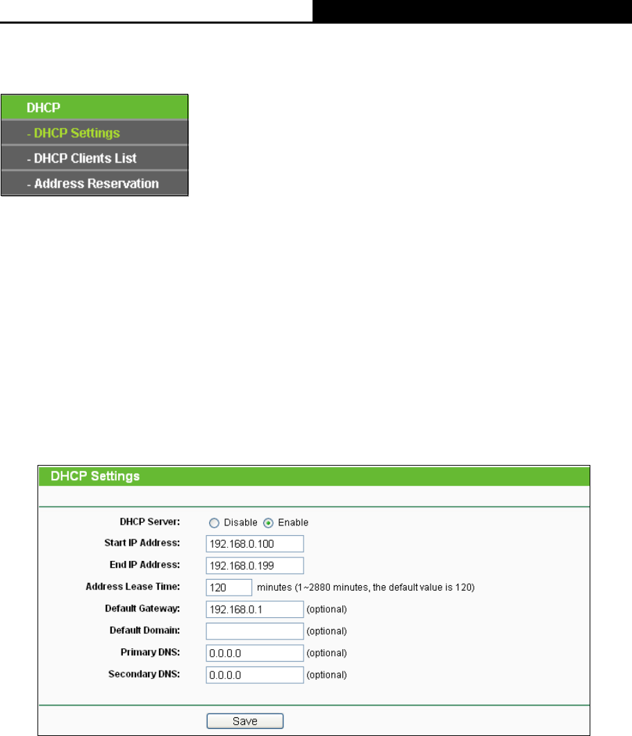 DHCP Settings”, you can configure the DHCP Server on the page as