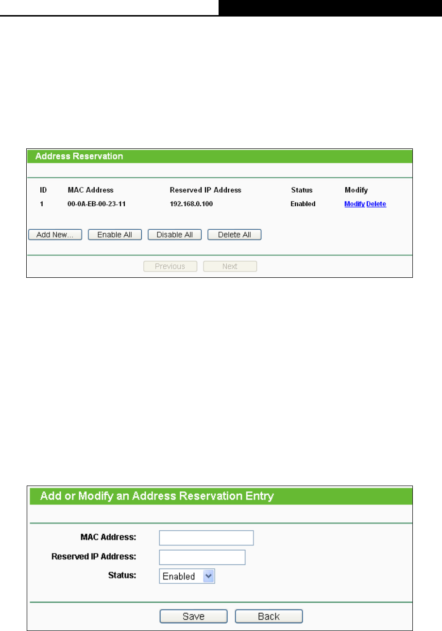 Figure 4-51 Add or Modify an Address Reservation Entry
