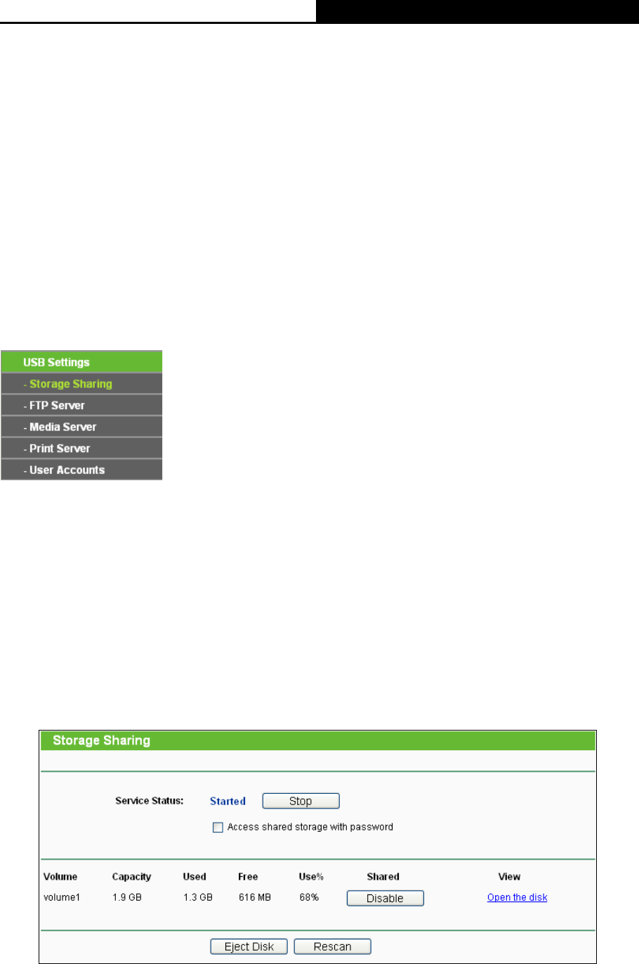 There are five submenus under the USB Settings menu (shown in Figure 4-52):Storage Sharing,